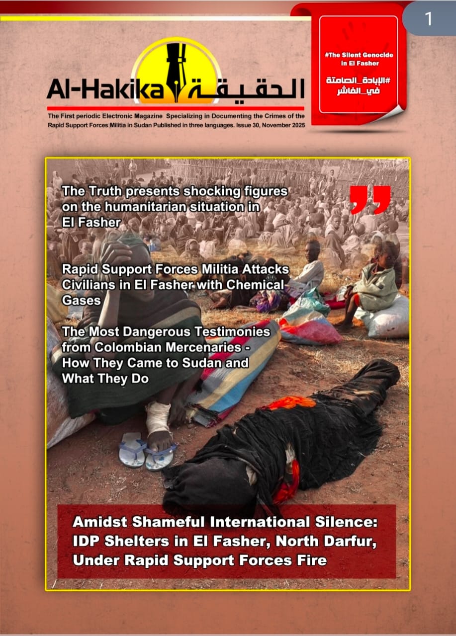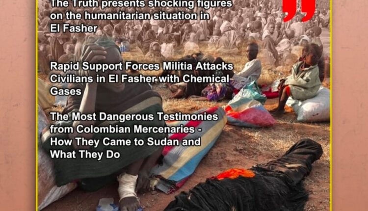 The Truth, in its 30th issue, presents shocking figures on the humanitarian situation in El Fasher, North Darfur, and sheds light on the most heinous crimes of the Rapid Support Forces militia against humanity against those forcibly besieged in El Fasher, after they prevented access to food and medicine and intensified the attack on the city through drones, artillery, and internationally prohibited chemical gases.